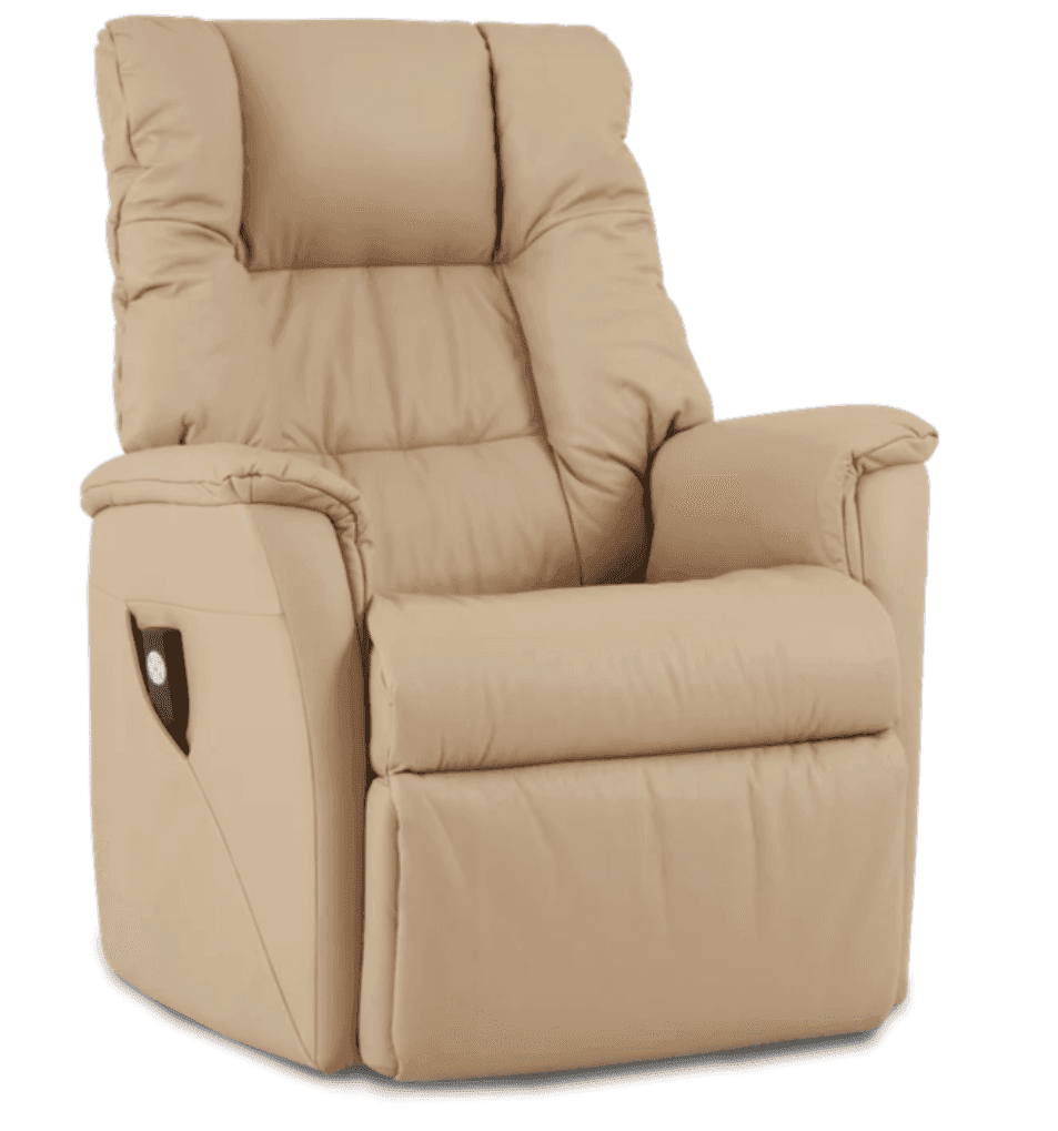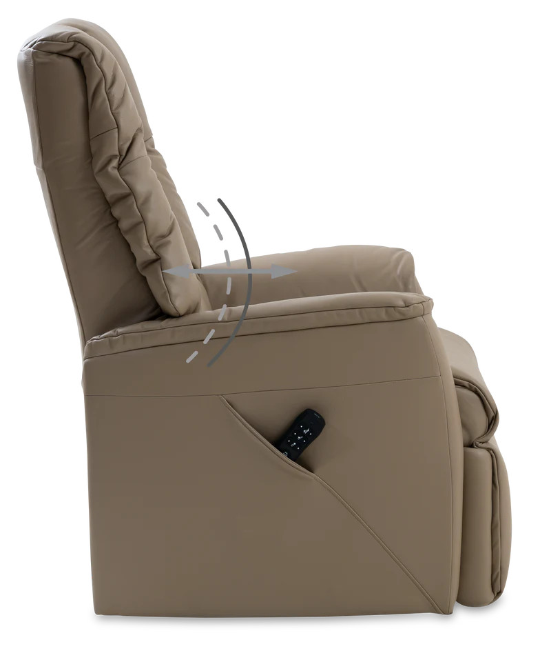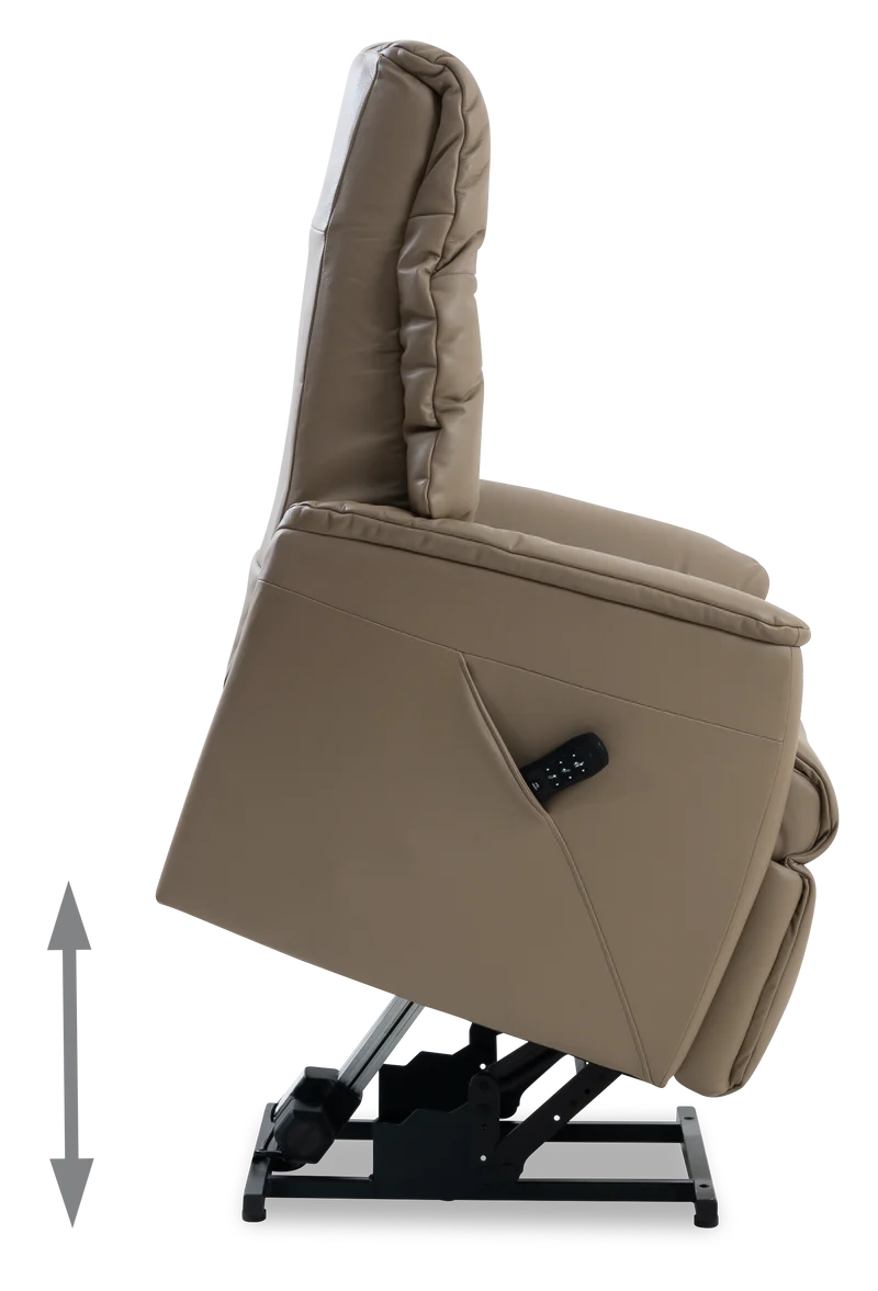 Simply using the remote control, the chair will gently elevate you to a standing position when you wish to stand. A handy side pocket stores the remote control for easy access.