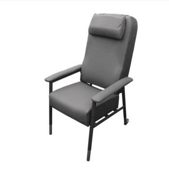 The Air Chair Slimline is specifically designed for use in high care environments where patients can be at risk of pressure sores and other pressure management issues. Our air cushion cell in the seat area, combined with our soft foam system throughout the chair, provides excellent pressure relief. It is highly adjustable, including arm rests and head wings that can be lowered below seat height for side transfers, as well as back rest tilt, leg rest tilt, tilt in space and adjustment for the height of the footrest pads. Four large locking castors and rear push handles and controls mean that the Air Chair Slimline can be easily pushed, adjusted and locked in place by carers. The sturdy frame makes it extra durable, as does the high-quality four-way stretch upholstery and powder coating on the frame. All our products are designed to be low-maintenance, reliable, and are built to last.
