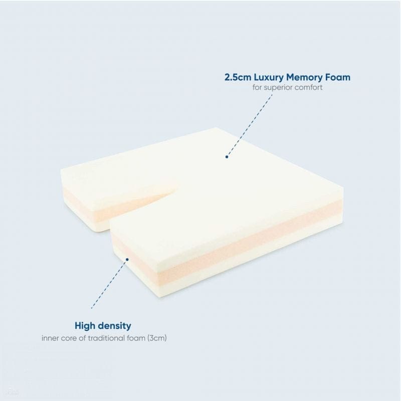 Coccyx cushion is made from visco memory foam with a special inner core of heavy density traditional foam.