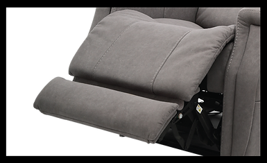 Two stage lift function . Lay flat chair design . Powered headrest to lift or lower head position . Footrest extension for increased comfort . Lumbar support to accommodate sitting posture . Ultra durable stylish fabric . Easy to use hand controller. Comes in Santa Barbara Fog colour fabric
