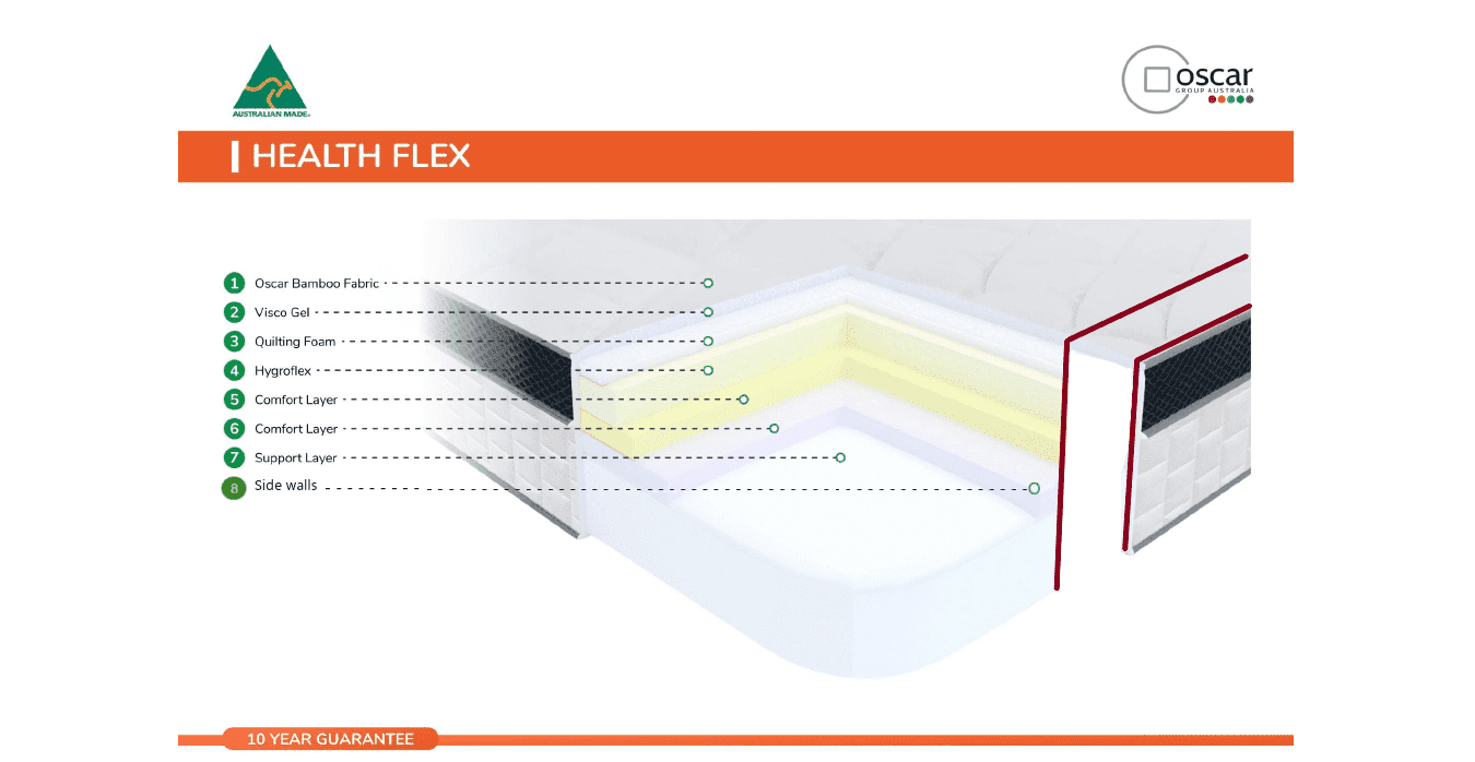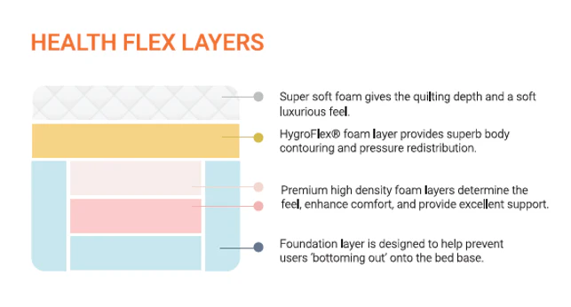 The Health Flex Mattress is a high-quality mattress that is designed to provide therapeutic benefits, such as reducing pain and improving circulation. The mattress is made with high-quality materials that provide superior comfort and support, and it is available in a variety of sizes and feels, so you can find the perfect mattress for your needs. The Health Flex Mattress comes with a 10-year guarantee, so you can be confident that you are investing in a quality product that will last for years to come.