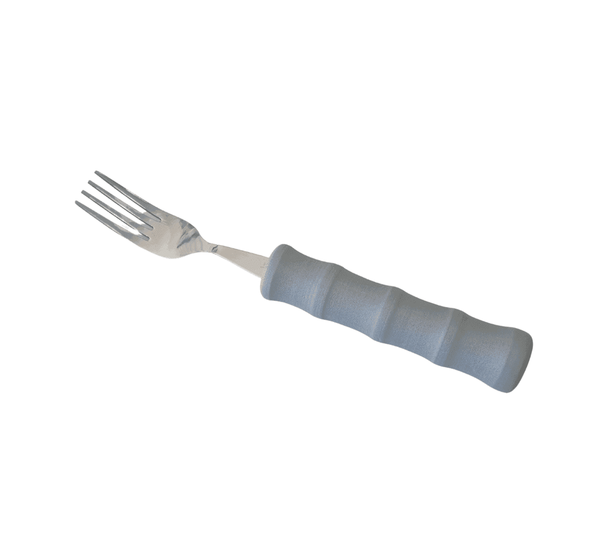 This fork is made with stainless steel implements and a soft foam handle for those with weak or painful grips. The handles are contoured, washable, and have a 28mm diameter. The utensils are not dishwasher safe.
