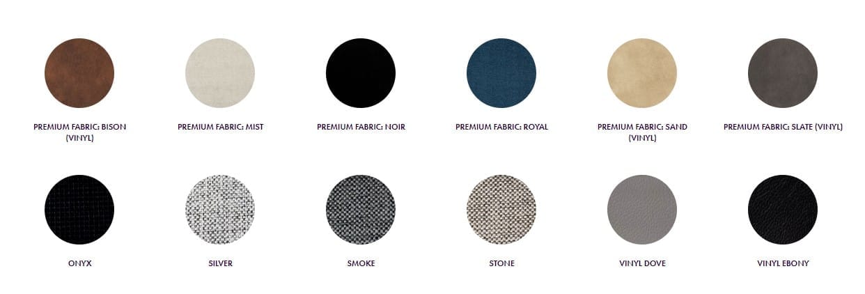 | Colour | Bison, Sand, Slate, Ebony, Dove |