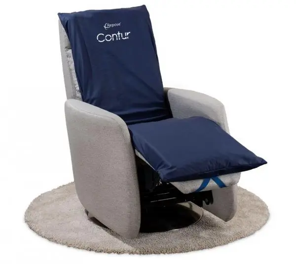 Repose Contur is a pressure redistribution cushion overlay for riser recliner chairs utilising the Repose tried and trusted inflatable air cell and ‘smart valve’ technologies.