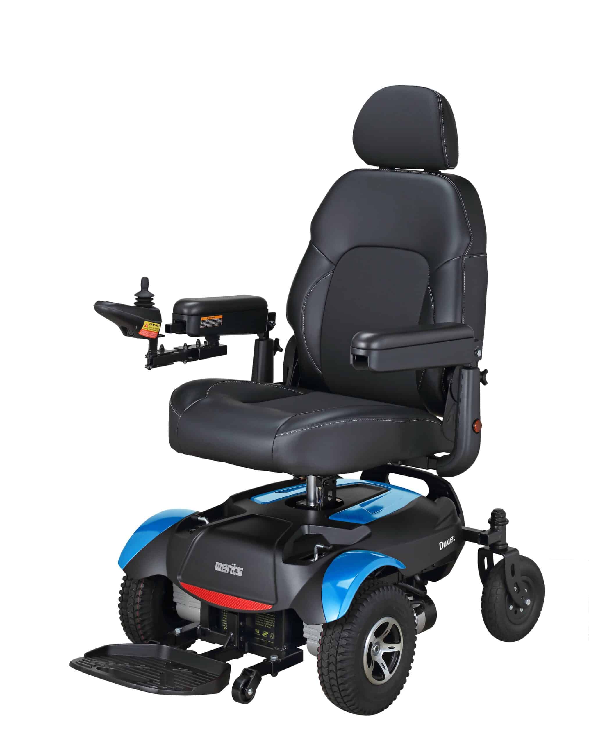 Power Chair Merits Dualer – Front/Rear Wheel Drive with Seat Lift – Blue
