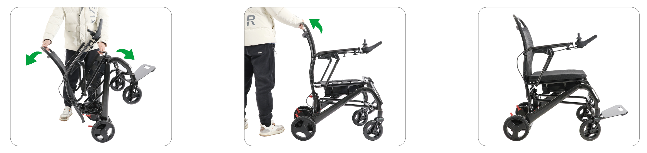 - Accessories available to be purchased separately – (Arm Rest Extension “Width-70mm” Kit, Remote Attendant Controller; Side Arm Bag; Cup/Bottle Holder; and Mobile Phone Holder)