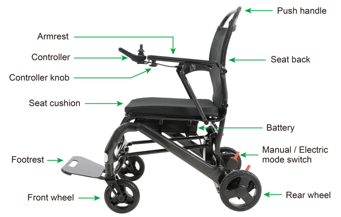 The Flytemax2 Powerchair features a sleek carbon fibre frame that ensures maximum durability and lightweight performance. With an impressive safe working load of up to 150kg. This powerchair provides robust support without compromising on weight. At just 15.6kg, its easy to maneuver, making it an ideal choice for those who value both strength and convenience in their mobility solutions.